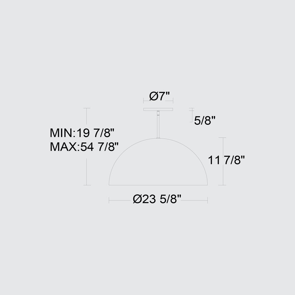 The 24-inch black aluminum dome LED dimmable outdoor pendant hanging light is a stylish addition to your outdoor living space. With its matte black finish and half round drum-shaped design, this light effortlessly complements transitional decor. Made from durable powder coated aluminum, it promises longevity while the frosted glass shade diffuses light beautifully. The integrated LED technology allows for efficient illumination, making it perfect for both indoor and outdoor settings. Dimmable functionality enhances ambiance, providing versatility for any occasion. Whether you're illuminating a patio or enhancing an indoor nook, this pendant light merges functionality with modern aesthetics. 11.88-inch h x 23.63-inch w x 23.63-inch d.