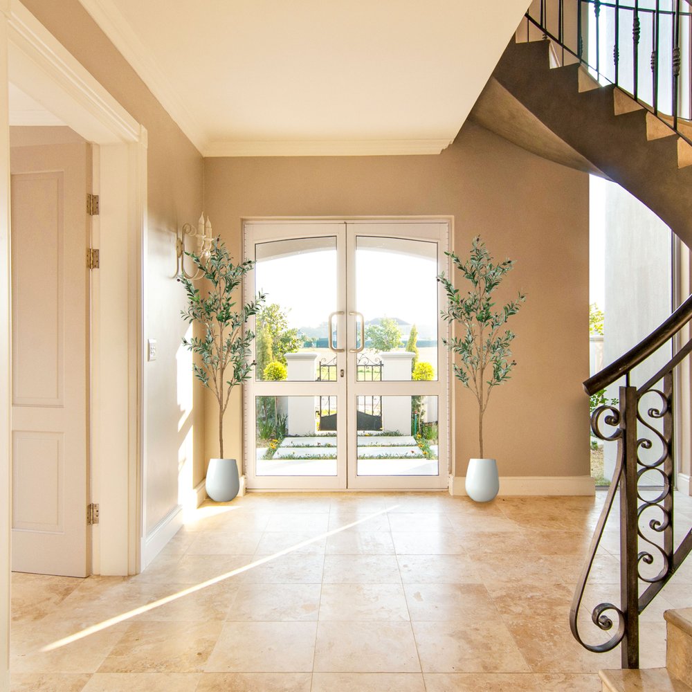 Set Of Two 84" Green Artificial Olive Trees in a Black Pot