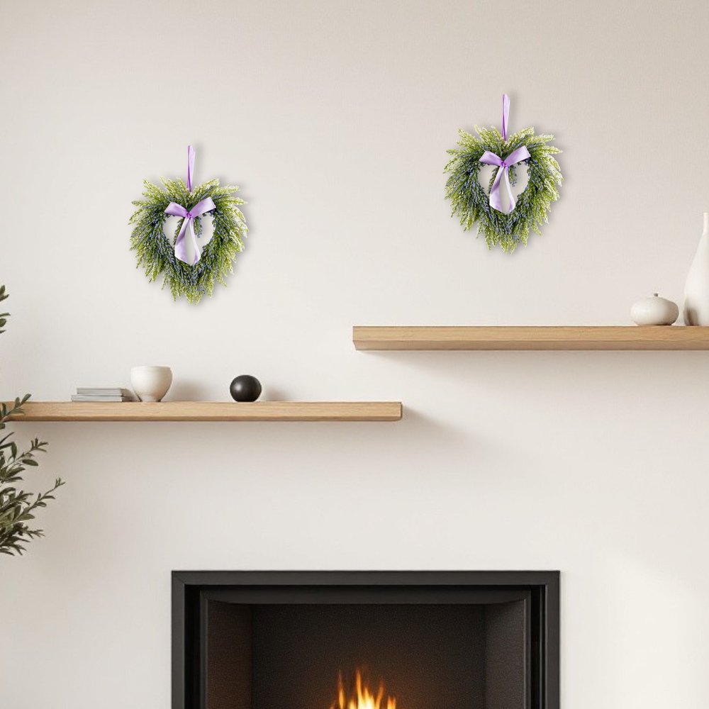 Set of Two 9" Green And Purple Heart Lavender Artificial Wreath