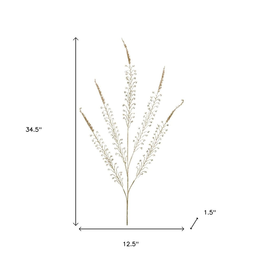 Set of Two Gold And Clear Faux Crystal Beaded Linear Fern Wreath Sprays