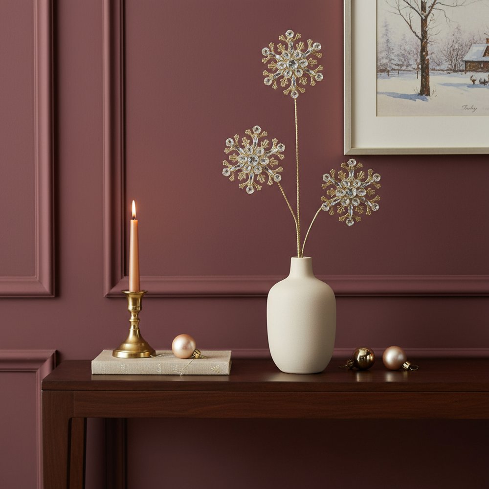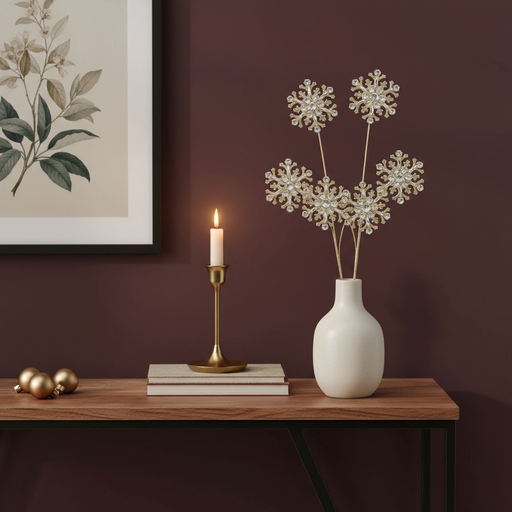 Set of Two Gold And Clear Faux Crystal Beaded Linear Snowflake Wreath Sprays